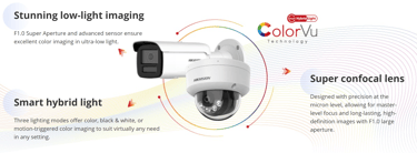 ColorVu - Provides color night images thanks to a fixed F1.0 lens that lets in as much light as possible.